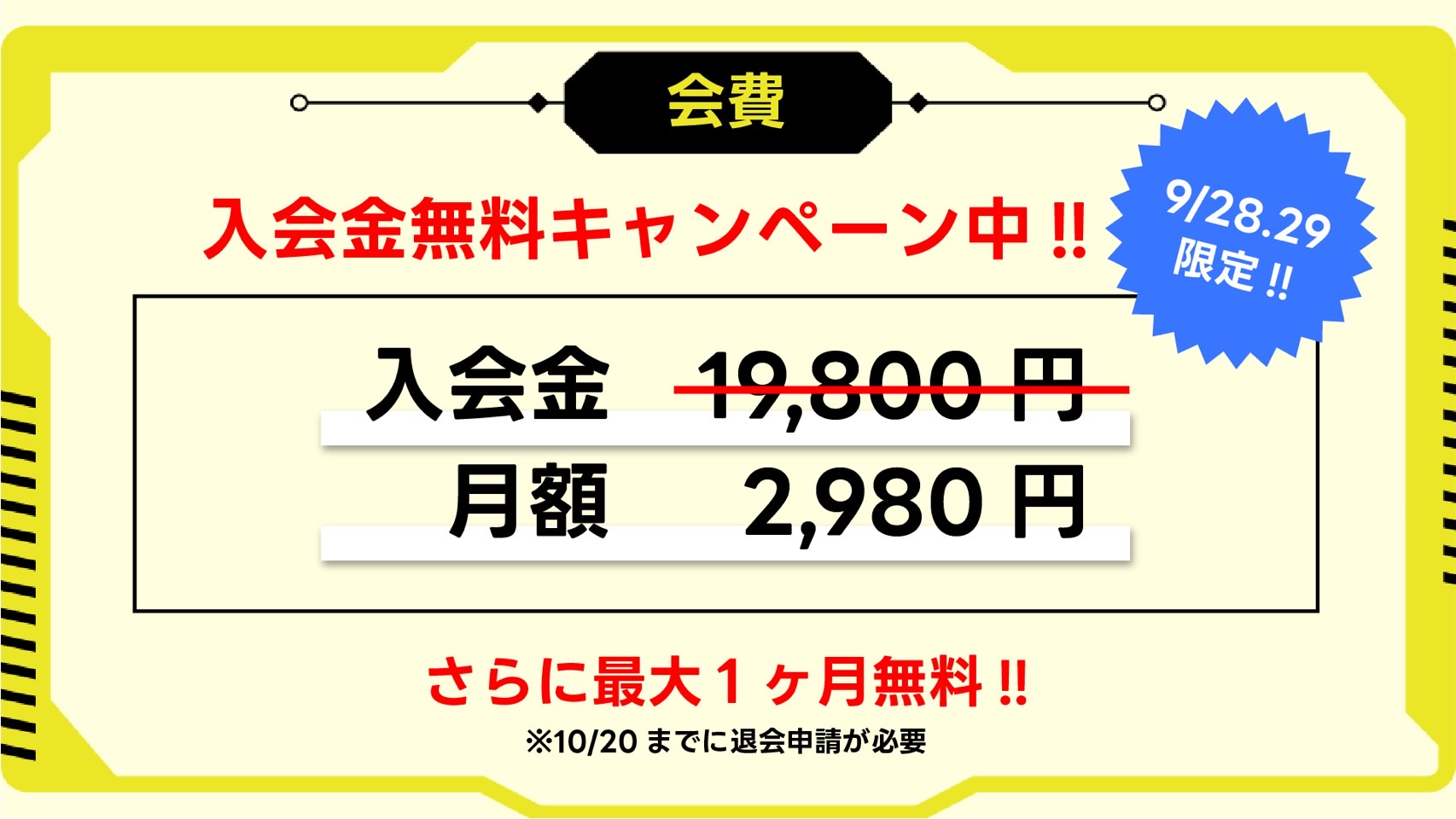 今回は入会金無料で今後も値上げなしでずっと2980円!